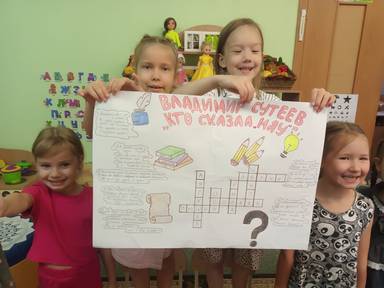 С 27 по 31 октября мы посвятили его двум замечательным юбилеям: 70-летию доброй и мудрой книжки Владимира Сутеева «Кто сказал «мяу»?» и 105-летию со дня рождения солнечного итальянского писателя Джанни Родари, подарившего миру веселого и храброго «Чиполлино». Вместе с детьми мы окунулись в мир этих прекрасных произведений. Сначала мы прочли историю о любопытном щенке, который искал того, кто сказал «мяу», и познакомились с мальчиком-луковкой и его друзьями, которые боролись за справедливость. Ребята с азартом разгадывали кроссворд, где каждая отгадка была связана с героями книг. А после все взялись за карандаши и краски, чтобы нарисовать своих любимых персонажей: кто-то — неуклюжего щенка, а кто-то — озорного Чиполлино в его смешных штанишках.