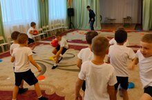 Сегодня в детском саду в старших группах прошли спортивные мероприятия на ловкость, быстроту и конечно же дружбу.