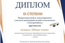 Большие инженерные победы начинаются с малого: с идеи, смелости и любви к технологиям! И у нас есть чем гордиться! В рамках работы Консорциума по развитию школьного инженерно-технологического образования команда учащихся нашей гимназии приняла участие в Межрегиональной инженерной онлайн-технологиаде «Электромобиль». Этот успех стал возможен благодаря: таланту наших гимназистов, их способности мыслить как настоящие инженеры-конструкторы; высокому профессионализму и наставничеству руководителя команды, Трубниковой Юлии Рустамовны. Поздравляем нашу команду-призёра и её руководителя с блестящим результатом! Желаем не останавливаться на достигнутом, черпать вдохновение в этой победе для новых, ещё более масштабных инженерных проектов и открытий!