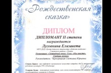 Поздравляем ученицу 5В класса Луговнину Елизавету победой на Всеросийском фестивале-конкурсе детского и юношеского творчества "Рождественская сказка". Желаем дальнейших удач!
