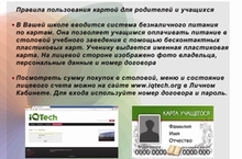 Доводим до Вашего сведения, что питание в столовой осуществляется только по карточкам питания за безналичный расчет.