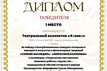 "Хәзинә" театр студиясен (җитәкчеләре Шәрәфиева Г.М., Бадамшина Р. Р.) «Мирас балкышы» Республика татар халык сәнгате һәм фольклор традицияләре конкурсында җиңүләре белән котлыйбыз. Катнашучылар югары дәрәҗәдә профессиональлек һәм артистлык осталыгын күрсәттеләр. Алга таба уңышлар телибез аларга.