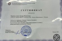- Реактивы на выбор (15 наименований): этот ценный набор позволит обогатить практическую часть уроков, делая изучение химии еще более наглядным и захватывающим. Мы гордимся нашим учителем и уверены, что полученное оборудование и реактивы сделают уроки химии в нашей гимназии еще более интересными и познавательными для всех учеников. Поздравляем Айзиру Фанисовну с заслуженной победой! Желаем дальнейших успехов в педагогической деятельности, новых профессиональных достижений и неиссякаемого вдохновения!
