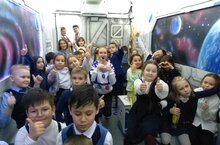 Сегодня ученики 2"з" и 3"з" классов посетили интерактивное представление, посвященное Дню космонавтики. Исследовали космические объекты, узнали как образовалась Солнечная система, и из чего она состоит; узнали о жизни звезд и откуда появляются черные дыры. Провели увлекательные эксперименты.