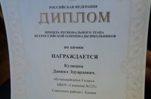 1,2 февраля 2017 года состоялся региональный этап Всероссийской олимпиады школьников по химиии. Призером олимпиады стал учащийся 9Г класса Кузнецов Даниил. Учитель - Леонтьева Надежда Леонтьевна.