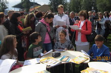 30 августа 2014 года учащиеся нашей гимназии побывали на одной из основных площадок праздничных мероприятий - Центральный парк культуры и отдыха им. Горького. Активное участие ребята приняли в проекте "Литературный дворик", где они участвовали в викторинах, читали по ролям, соревновались в выразительном чтении, общались с литературными персонажами и приобщались к поэзии. Однако больше всего наших ребят поразила церемония открытия пешеходного интерактивного фонтана. Восторженные крики и аплодисменты вызвали струи воды, которые вырывались вверх под звуки живой классической музыки.