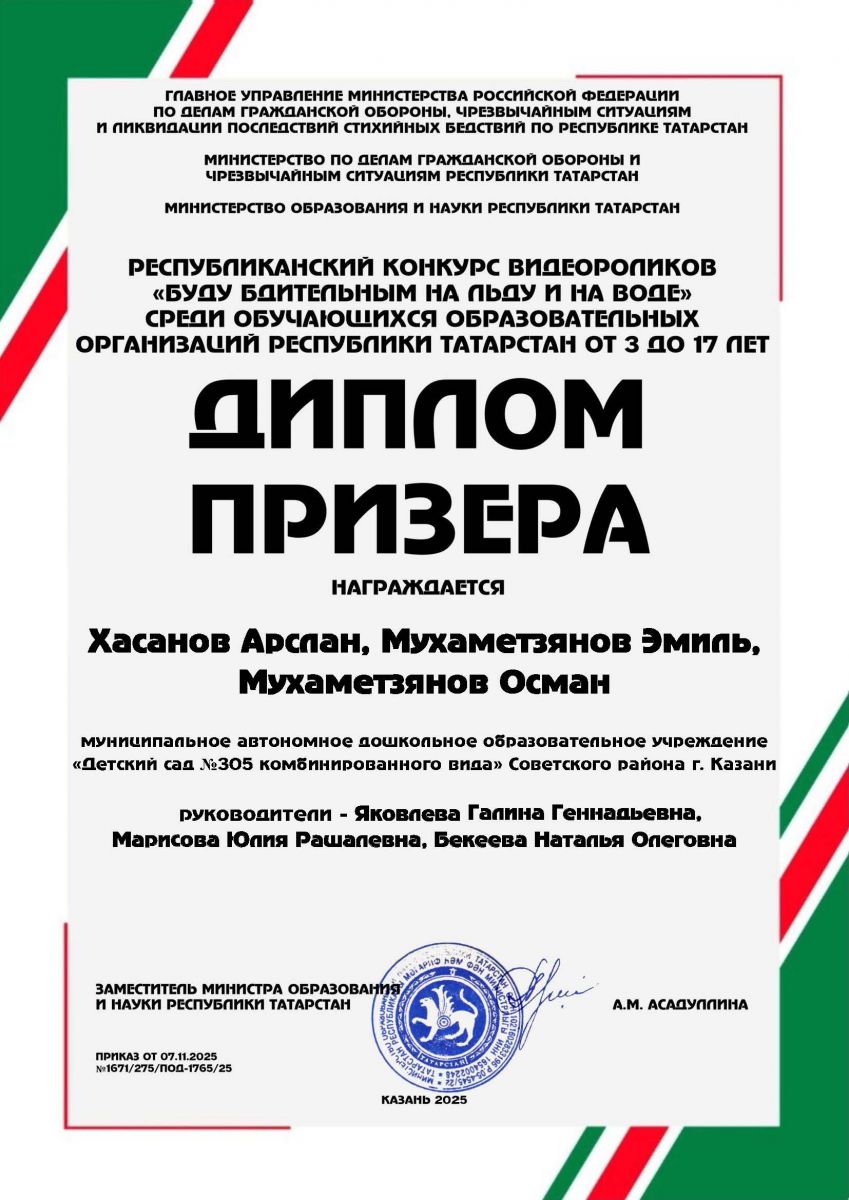 Республиканский конкурс видеороликов «Буду бдительным на льду и на воде», который проводят Главное управление МЧС России по Республике Татарстан, МЧС РТ и Министерство образования и науки РТ.