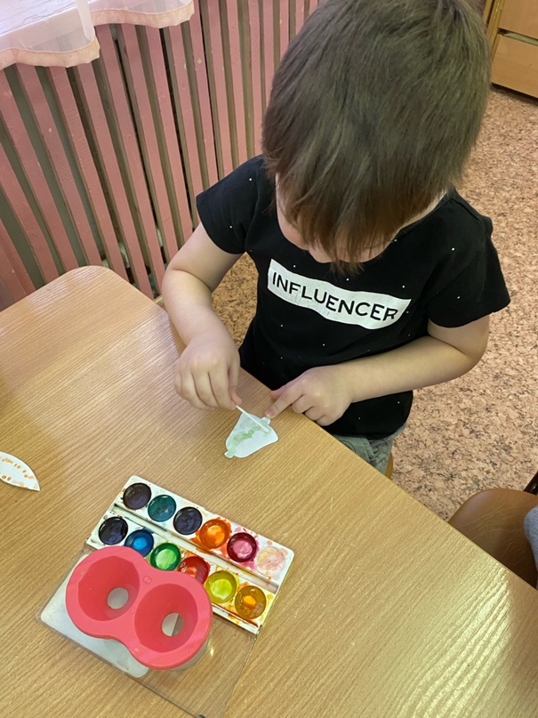 Дети средней группы №3 познакомились с елочными игрушками, как изготавливают их, геометрической формой, характерными особенностями. Украшали шаблоны различными украшениями с ватными палочками.