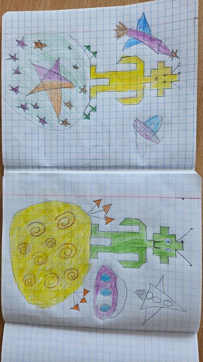 Аппликация в подготовительной группе "Звезды и кометы" и графический диктант "Инопланетяне" на занятии по математике