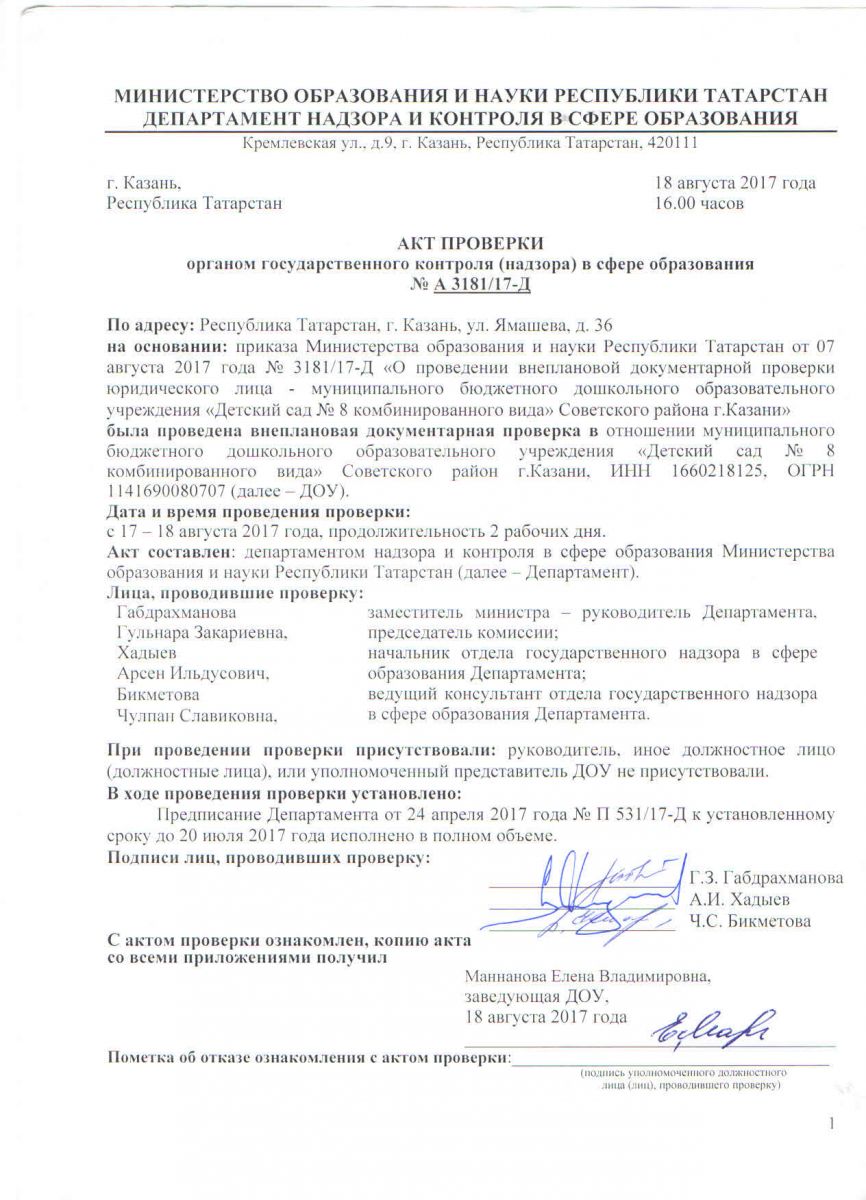 Короткое название: | МБДОУ «Детский сад №8 комбинированного вида» Советского района г.Казани |