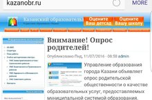 Внимание! Опрос родителей! 14.07.2016Управление образования города Казани объявляет опрос родительской общественности о качестве образовательных услуг, предоставляемых муниципальной системой образования. Для того чтобы проголосовать необходимо кликнуть на соответствующий баннер вверху главной страницы порталаhttp://www.kazanobr.ru или пройти по ссылкам: http://test-kazanobr.ru/node/279 (для школ), http://test-kazanobr.ru/node/286 (для детских садов). Регистрации на портале для участия в опросе не требуется. Спасибо за Ваш голос!