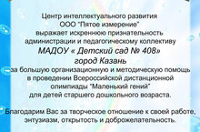 Воспитанники детского сада под руководством педагогов детского сада приняли активное участие во Всероссийской дистанционной Олимпиаде "Маленький гений "для детей старшего дошкольного возраста