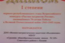 Поздравляем Музей Боевой и Трудовой Славы (руководитель Ахидова Е.В.) с победой в республиканском этапе