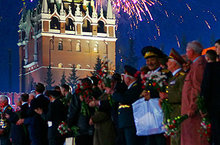 В День Победы производится организованное шествие к Могиле Неизвестного Солдата (в Москве), парад в городах-героях, праздничный салют.