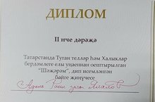 19 нчы март көнне Казан кооператив иституты “Туган телләр һәм халыклар бердәмлеге елы” уңаеннан “Шәҗәрәм” дигән бәйге үткәрде. Безнең лицейның 9 нчы А сыйныфы укучысы Ялалов Адель II нче дәрәҗәдәге дипломга лаек булды (җитәкчесе-Х.Х.Сөләйманова). Афәрин!