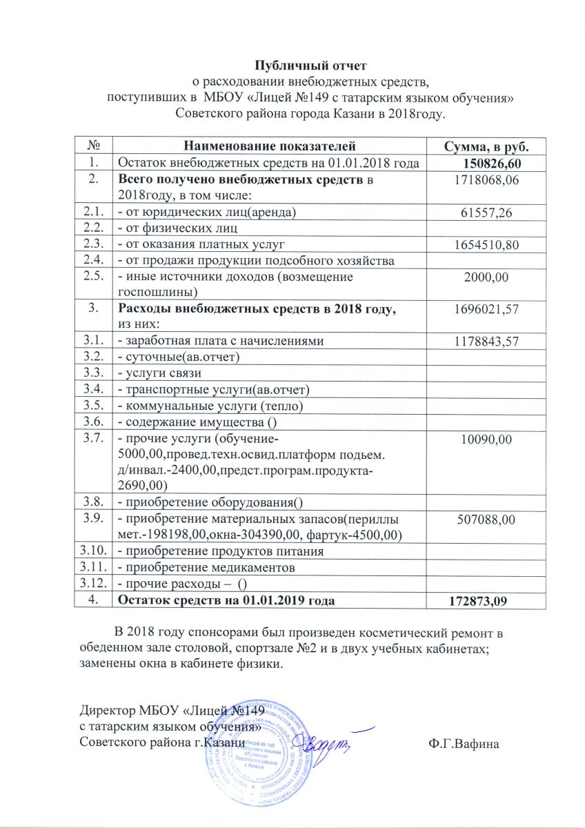 Информация о финансово-хозяйственной деятельности, о расходовании внебюджетных средств за 2018 год