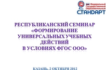 Республиканский семинар "Формирование универсальных учебных действий в условиях реализации ФГОС ООО" 02.10.2012