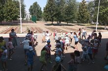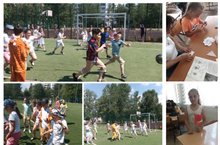 На улице очень жарко! Но и в лагере у нас тоже очень жарко! Мастер-класс по футболу и приглашением поучаствовать в настоящем турнире нам очень понравился! А затем мы снова устроили водную атаку! Весело в "Веселой стране" в любую погоду!