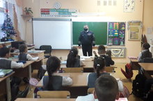 23 декабря инспектор ГИБДД, в преддверии новогодних каникул напомнил ребятам начальной школы и 5х классов о правилах ПДД, о светоотражающих элементах и т.д.