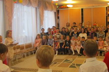 Сегодня в детском саду был организован досуг для детей. Дети старших групп показали малышам мюзикл "Пых-пых" о событиях на огороде осенью.