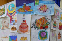 Учащиеся начальной школы с 1 - 4 классы помогли оформить красивую выстаку для конкурса кулинарный базар «Лукошко рецептов - 2016»