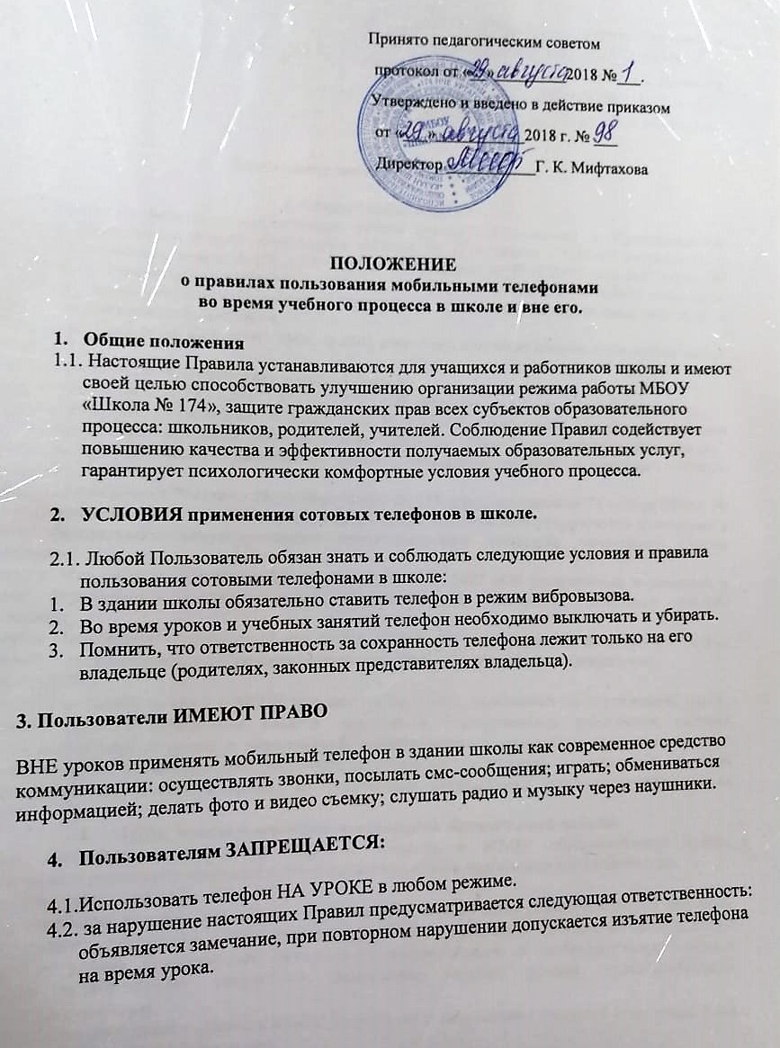 Открыть ссылку: Положение о пользовании мобильными телефонами.