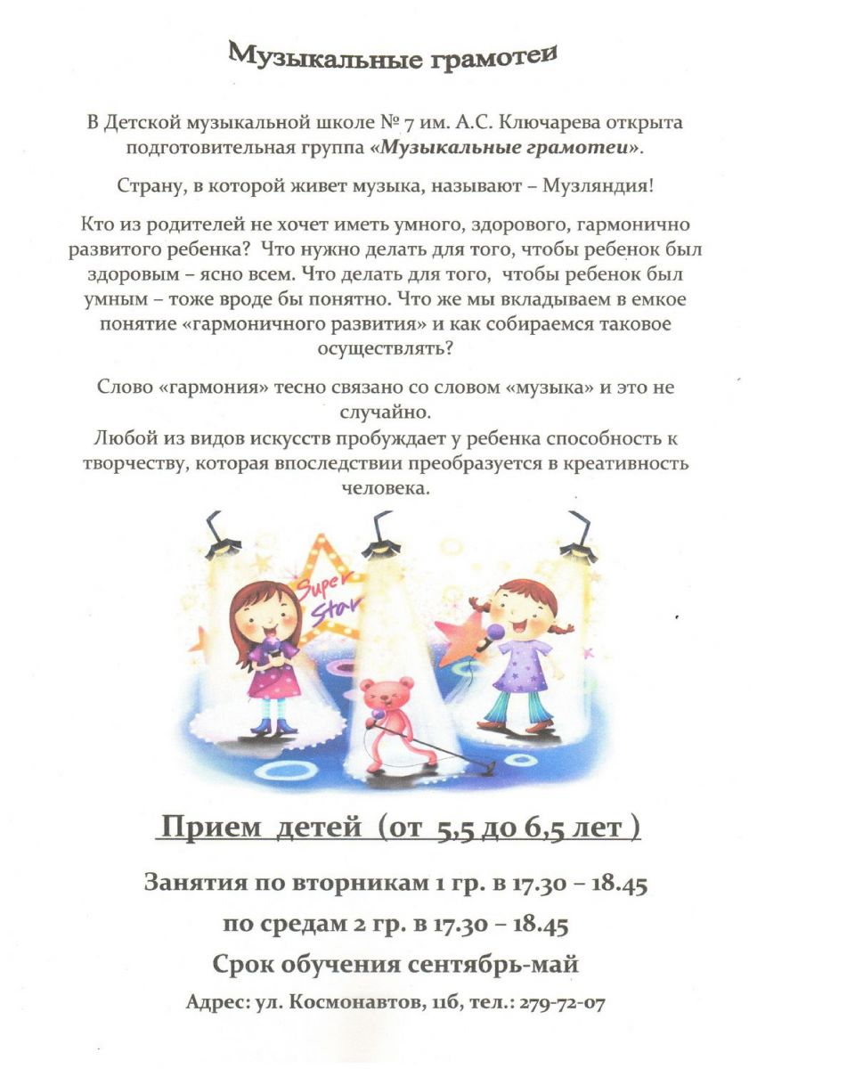 Открыта подготовительная группа «Музыкальные грамотеи» для детей от 5,5 до 6,5 лет