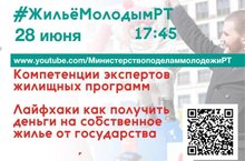В целях повышения эффективности информирования молодежи о действующих в Татарстане мерах государственной поддержки молодых специалистов, молодых семей в улучшении жилищных условий Министерством 28 июня 2021 года в 17.45 запланировано проведение прямого эфира #ЖильёМолодымРТ.