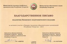 С благодарственным письмом вернулись с осенней республиканской ярмарки сельхозпродукции, образовательное учреждение «Казанский политехнический колледж».