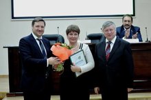 Вручение диплома Заместителю директора КПК - Садртдиновой Гузял Касыймовне и награждение участников Природоохранной акции "Всероссийский субботник "Зеленая Россия""