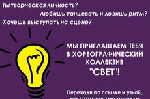 Тогда мы приглашаем тебя в хореографический коллектив "Свет"!