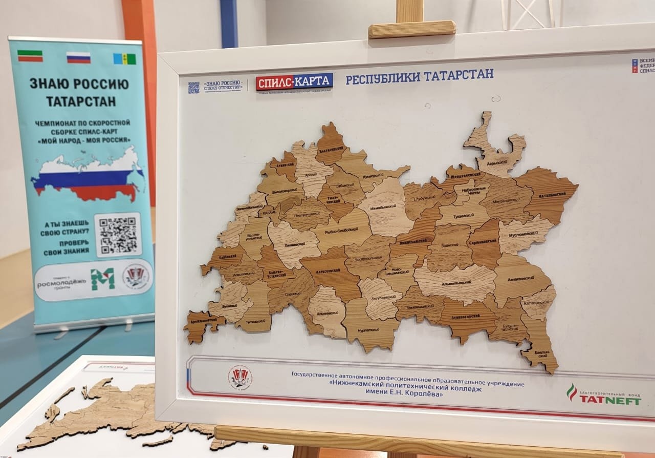В первом туре команды должны были за отведенное время собрать карты Российской Федерации и Республики Татарстан.