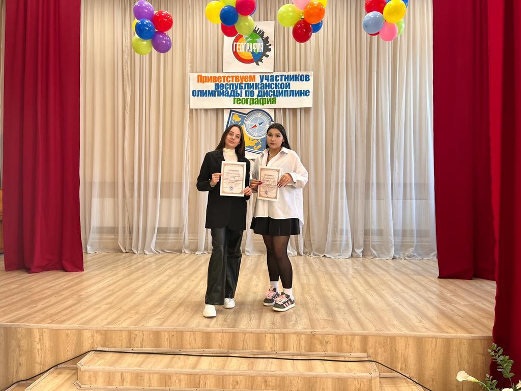Олимпиада проводилась в целях повышения познавательного интереса студентов к предмету "География", созданию необходимых условий для выявления одарённых учащихся. Олимпиада проходила в три этапа: теоретический, практический и тестовый. По итогам олимпиады наши студентки получили сертификаты участников. Руководитель - преподаватель географии Саттарова Ф. М