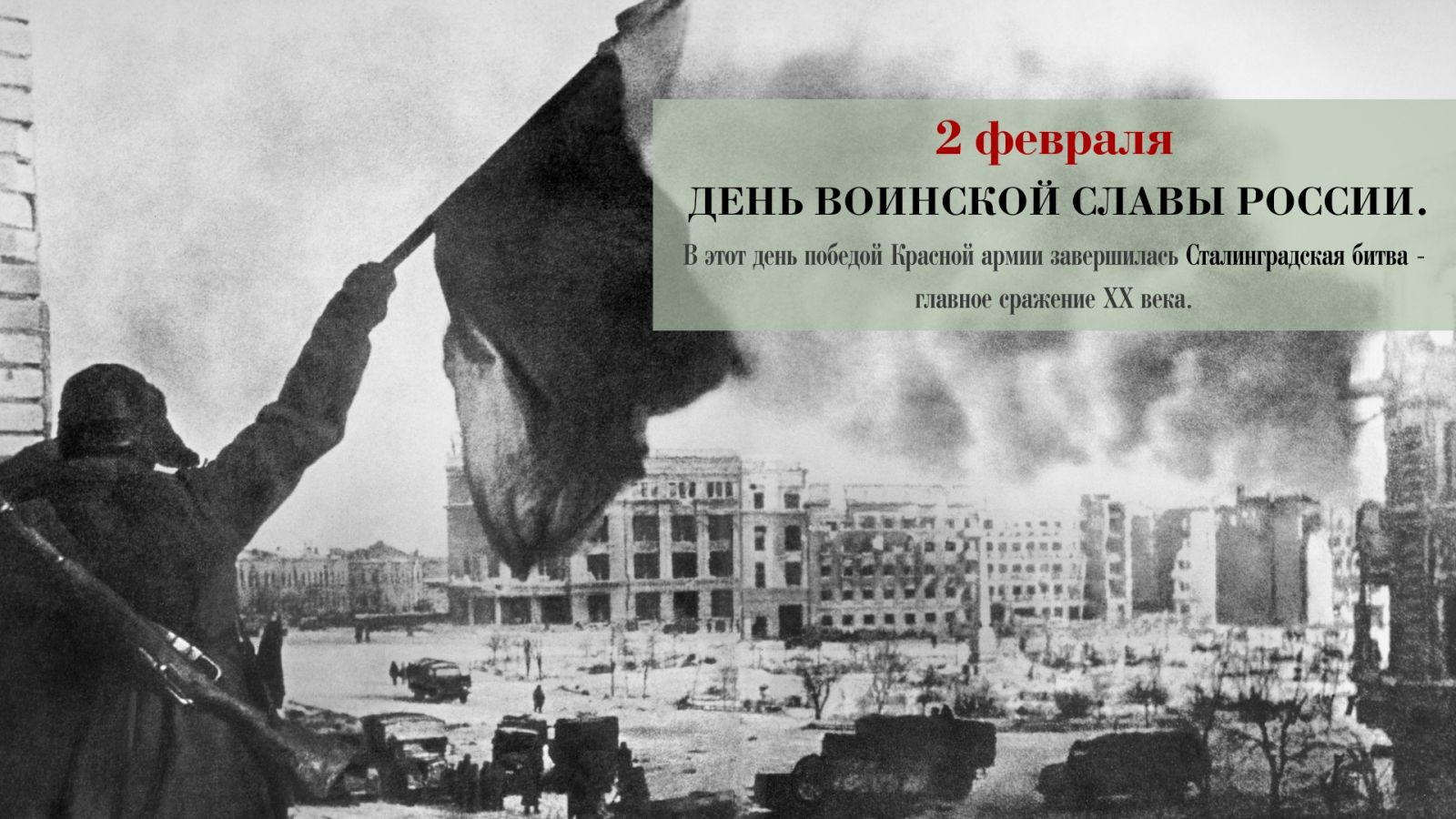 2 февраля - День разгрома советскими войсками немецко-фашистских войск в Сталинградской битве.