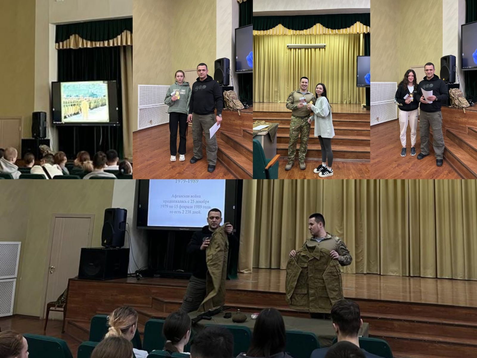 Сотрудники Центра «ВОИН» в рамках занятий по основам военной подготовки провели Урок мужества, в ходе котрого рассказали о событиях Афганской войны, причинах ввода Советских войск в Афганистан, какую роль в ходе Афганской войны сыграли Советские войска, результаты и последствия войны. Также были отмечены и награждены студенты, которые лучше всех прошли проверку знаний.