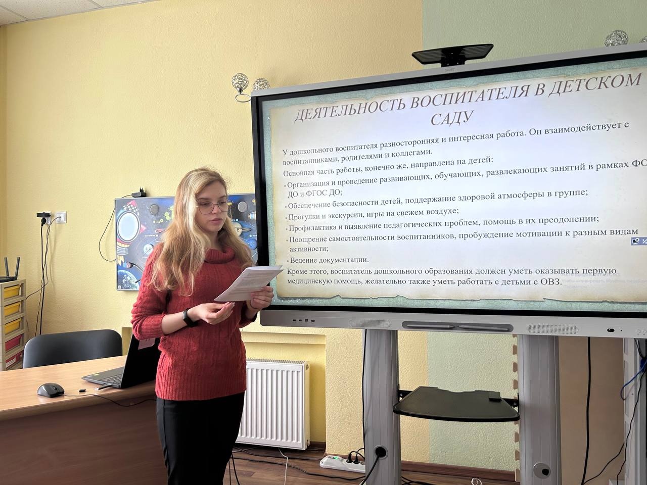 Опубликовано: 16.02.2024В завершении декады ПЦК педагогики психологии дошкольного образования проведено итоговое мероприятие для студентов 3-4 курсов специальности Дошкольное образование, Преподавание в нач. классах и Физическая культура на тему: "Профессия - педагог, за и против". Были рассмотрены важные вопросы профессионального ориентирования и перспективы развития дошкольного и начального образования в целом.