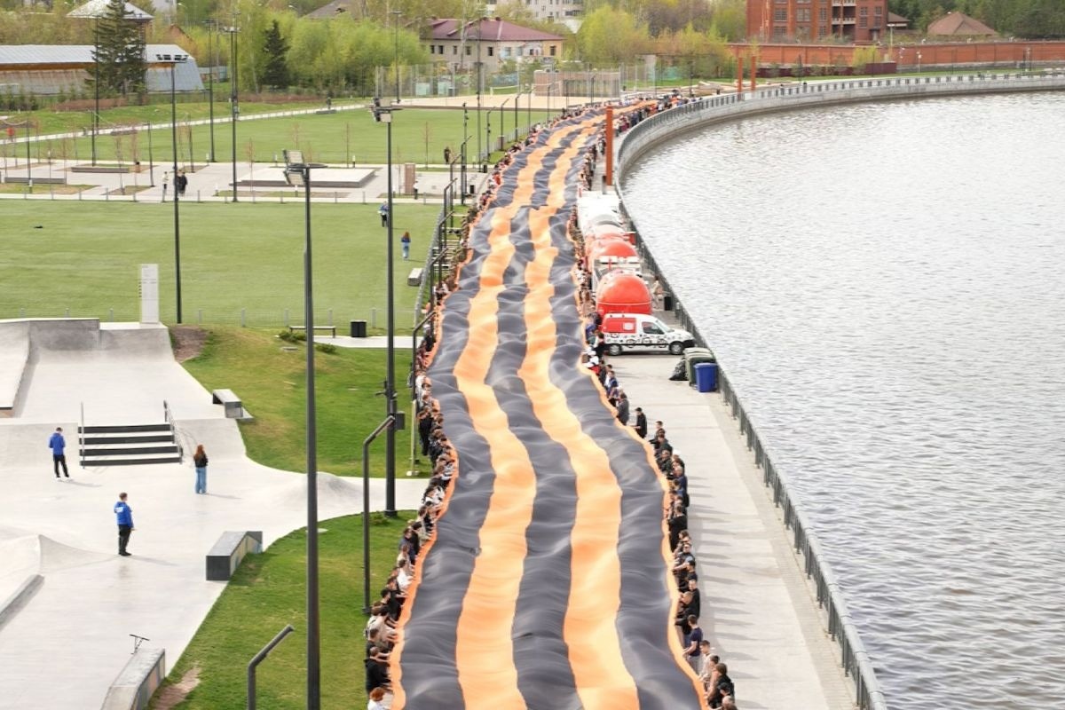 В рамках старта 25 апреля 2024 года Всероссийской акции «Георгиевская лента» Молодая Гвардия Республики Татарстан совместно с Казанским местным отделением Партии «Единая Россия» и Комитетом по делам детей и молодежи Исполнительного комитета г.Казани организовали раскрытие крупнейшей Георгиевской ленты в Российской Федерации размером 300 метров на набережной реки «Казанка» возле экстрим-парка «Урам».