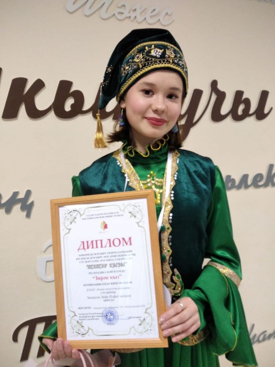 Көллиятебезнең беренче курс студенты Закирова Зифа “Зирәк кыз” номинациясендә җиңде.