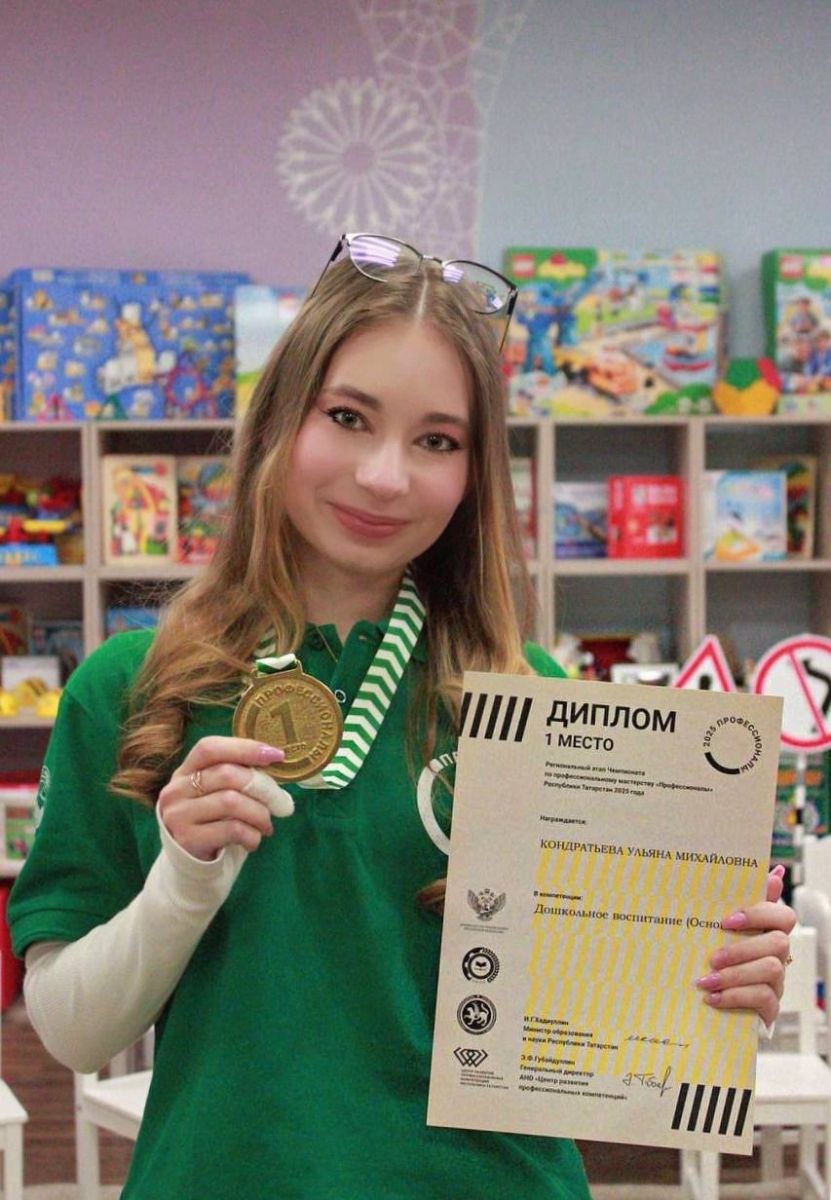 Опубликовано: 28.02.2025В период с 24.02 по 27.02 на базе Казанского педагогического колледжа проходил региональный этап Чемпионата «Профессионалы» по компетенции «Дошкольное воспитание» (Основа). На площадке соревновались 6 участников из: Казани,Арска, Набережных Челнов, Лениногорска, Нижнекамска и Мензелинска. Наша студентка 333гр. Кондратьева Ульяна, выполнив все задания на отлично, показала себя настоящим профессионалом своего дела и заняла почетное 1 место!