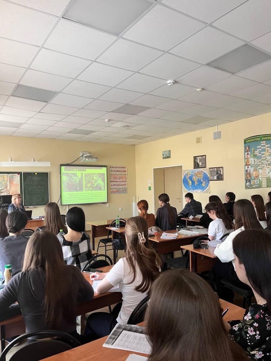 В этот день в ГАПОУ «Казанский педагогический колледж» под руководством преподавателей ОГСЭД был организован цикл мероприятий, посвящённый памяти жертв геноцида советского народа нацистами и их пособниками. В рамках данного цикла провели уроки мужества, просмотр видеофильмов «Без срока давности», онлайн-игры, открытый микрофон и др.