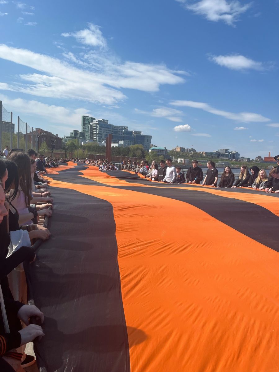 В рамках данного мероприятия состоялось раскрытие 300-метровой Георгиевской ленты на набережной реки Казанка