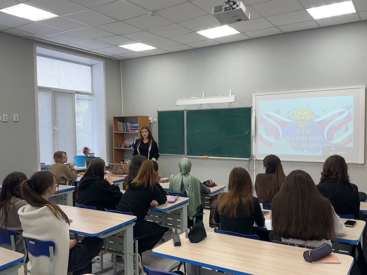Студенты познакомились с тематической лекцией «ДНК России. Как устроена Государственная Дума?» от Российского общества «Знание».