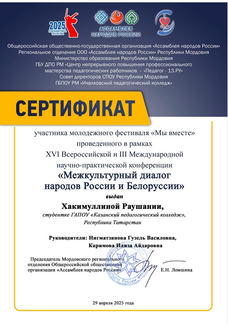 Опубликовано: 22.05.2025С 29 апреля по 20 мая на базе ГБПОУ «Ичалковский педагогический колледж» Республики Мордовия в очно-заочном формате проходила XVI Всероссийская lll Международная научно-практическая конференция «Межкультурный диалог народов России и Белоруссии».