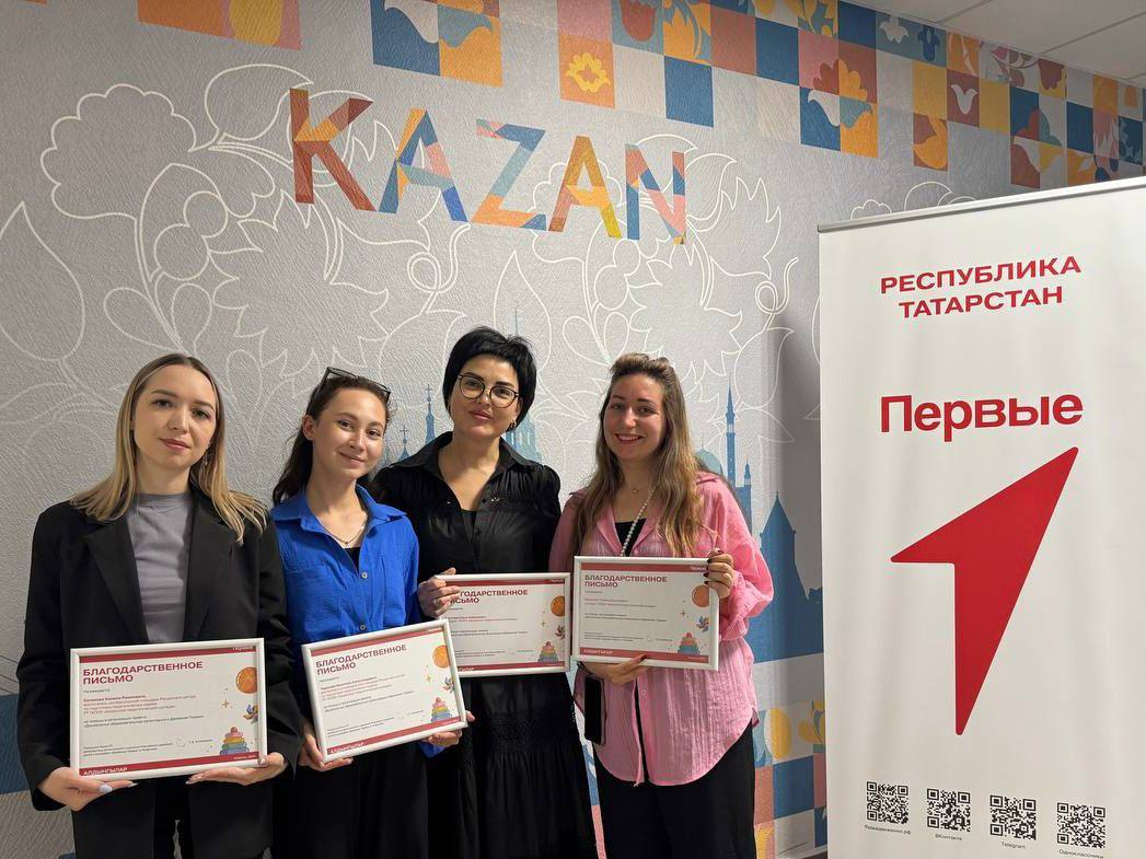 Авторскому коллективу Ульяновой Э.Э., Салаховой К.Р., Тарасовой К.А., Бирюковой Т.Д. были вручены Благодарственные письма за помощь в организации проекта «Дошкольные образовательные организации в Движении Первых» от Помощника Раиса РТ, руководителя регионального отделения Российского движения детей и молодежи «Движение Первых» в Татарстане Т.Д.Сулейманова