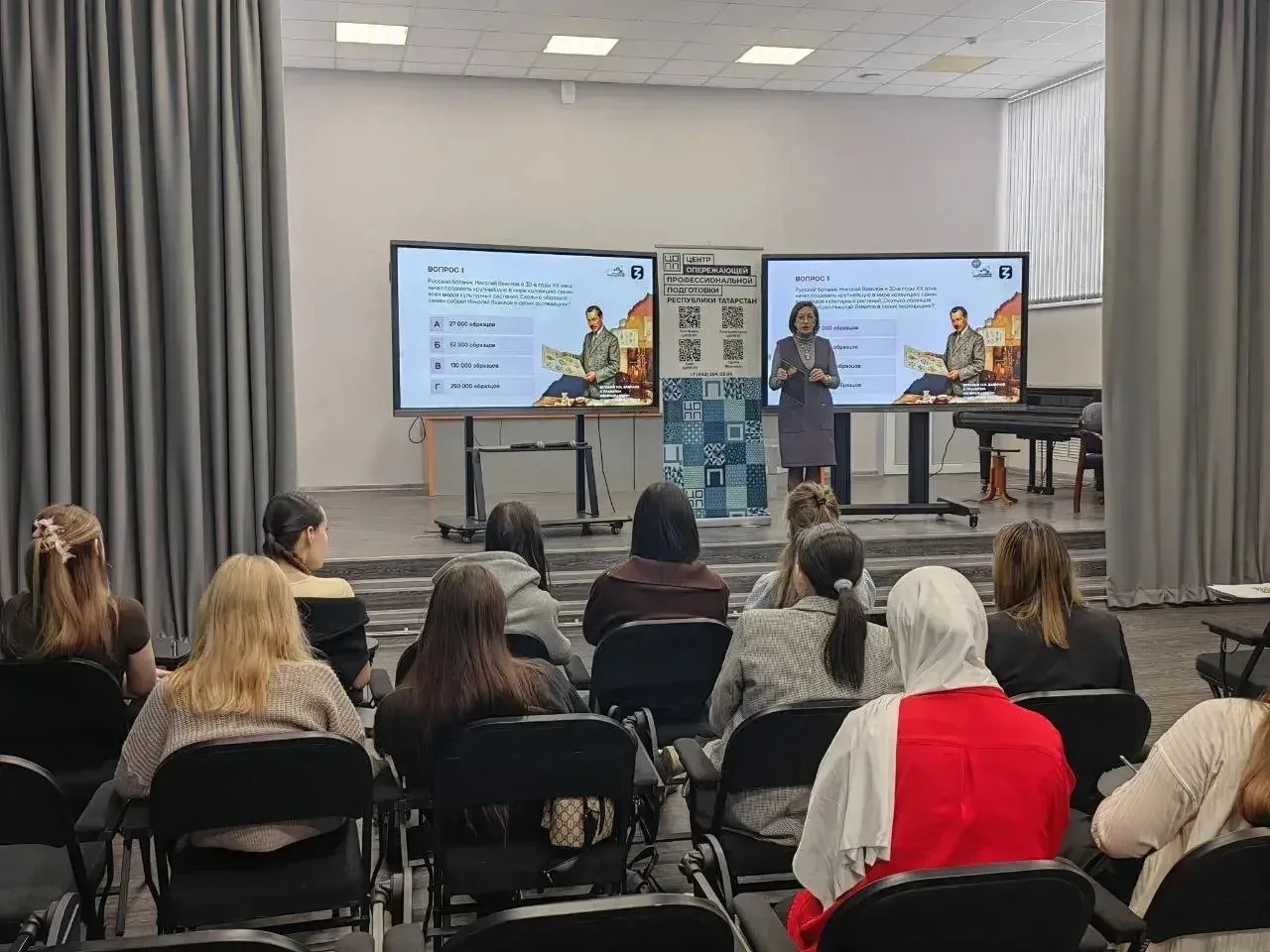 Отдельный блок мероприятий был посвящен современным достижениям и популяризации науки. Лекторы Российского общества «Знание» Н.С.Королева, руководитель ЦОПП, М.Г.Матвеева, заместитель руководителя ЦОПП по учебно-методической деятельности, К.А.Фомина, специалист по профориентационной работе, провели для студентов викторины «День российской науки». В интерактивном формате участники проверили свои знания о великих ученых и изобретениях, обсудили актуальные вопросы: какие научные направления сегодня наиболее перспективны и как молодому специалисту построить успешную карьеру в исследовательской деятельности.