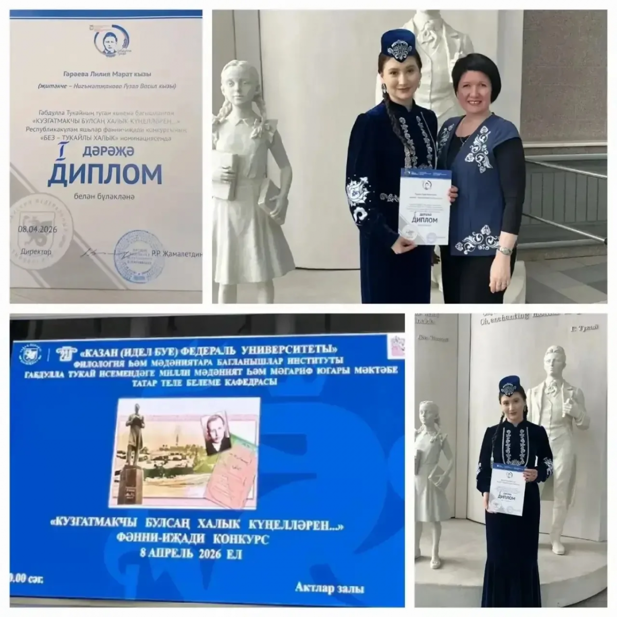 Көллиятебез студенты Гәрәева Лилия"Без- Тукайлы халык"номинациясендә җиңеп l дәрәҗә диплом белән бүләкләнде.