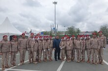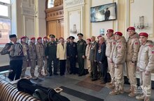 Ветерана на казанский вокзал пришли проводить наши ребята 8К класса - юнармейцы совместно с представителями ветеранского движения Республики Татарстан во главе с Александром Ильичём Бородиным, который выразил общую благодарность участнику войны за его бесценный вклад в Великую Победу.
