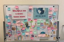 Сегодня в лицее проходила акция "Мир там, где мы". Учащиеся с удовольствием делились своими мыслями и ответами на вопросы "Что такое мир?", "Каким я должен быть, чтобы был мир на Земле?", "Что мы можем сделать, чтобы небо над головой было мирным?"