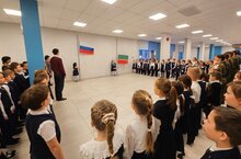 Чести поднять государственный флаг РФ был удостоен учащийся 5В класса – Нугманов Адель – призёр Международной научно-практической конференции в г.Улан-Удэ в рамках фестиваля «Дорога дружбы».