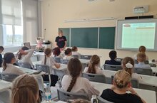 Для учащихся 10А и 8Г классов с презентацией выставки «Улицы Героев Татарстана» сегодня выступила главный редактор журнала «Казань», заслуженный деятель искусств Республики Татарстан, член Союза писателей РТ и Союза российских писателей – Альбина Абсалямова. Особо подробно гость остановилась на фронтовом и творческом пути писателя Абдурахмана Абсалямова, показала подлинные экспонаты из его личного архива – газеты, фронтовые письма, фотографии.